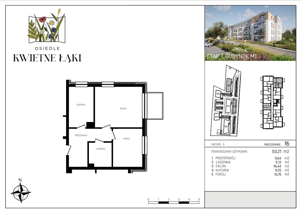 Mieszkanie znajduje się w pierwszym z pięciu zaplanowanych budynków na Osiedlu Kwietne Łąki, przy ulicy Targowej 17 w Poddębicach. W budynku znajduje się 35 mieszkań. Dla wygody mieszkańców na każde z trzech pięter dojedziemy windą. Każda kondygnacja posiada komórki lokatorskie1 dzięki czemu wszystkie potrzebne przedmioty będziesz miał zawsze pod ręką. Wygodnym rozwiązaniem jest też rowerownia/wózkownia czyli pomieszczenie na parterze z oddzielnym, wygodnym, zamykanym i szerokim wejściem z zewnątrz dzięki czemu Wasze rowery i wózki będą bezpiecznie czekały na Was, a wyjście na spacer czy przejażdżkę nie będzie kojarzyło się z ich dźwiganiem.